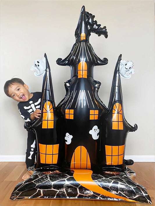 1pc Halloween 58-inch super-large haunted house castle standing aluminum foil balloon, horror Halloween, haunted house party