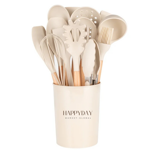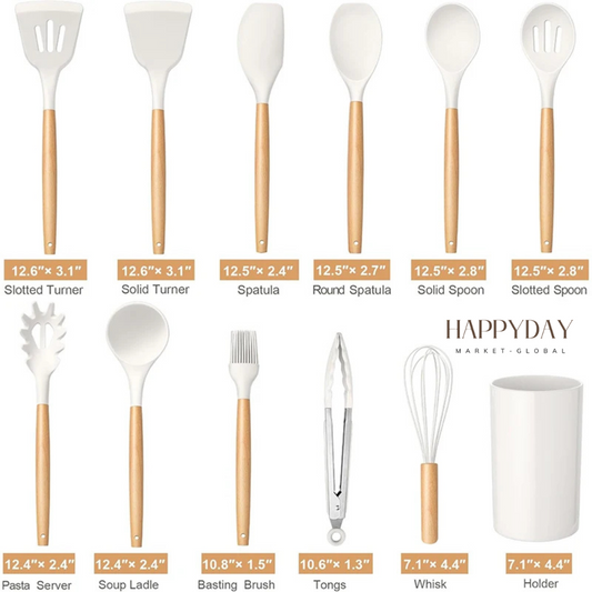 HAPPYDAY - 12 Pcs Silicone Kitchen Utensils Set - Heat Resistant, Non-Stick Cooking Tools