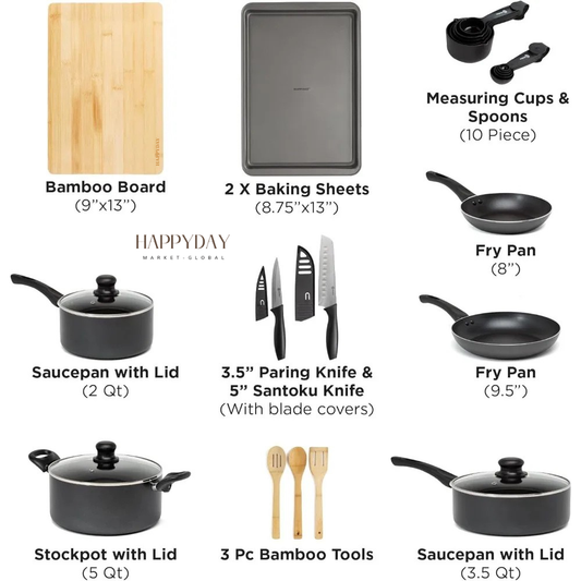 HAPPYDAY - Ceramic Nonstick Cookware Set 26 Piece