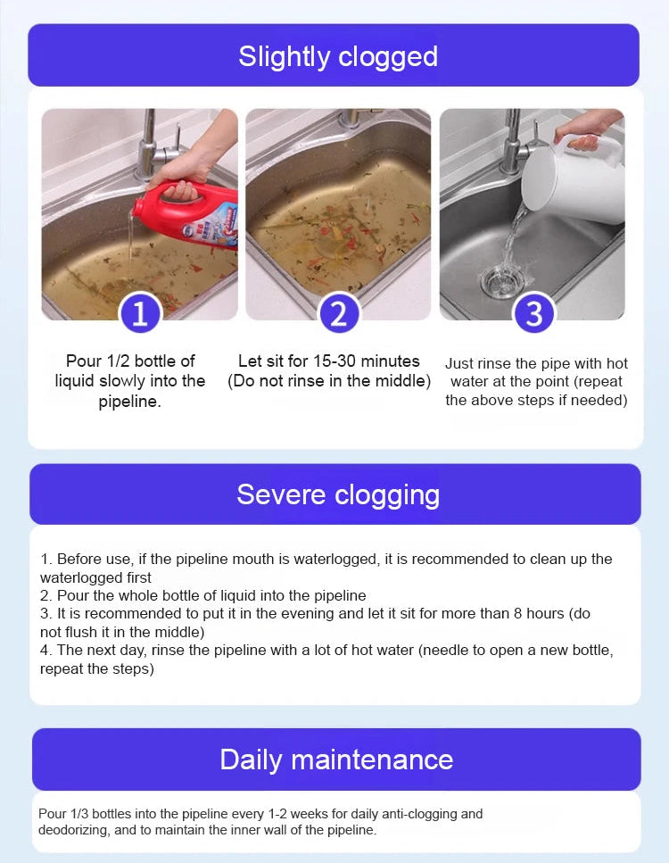 Say goodbye to stubborn kitchen clogs with our Household Gentle Pipe Unblocker — a professional-grade yet eco-safe solution designed to dissolve oil, grease, and residue buildup quickly without harming your pipes.